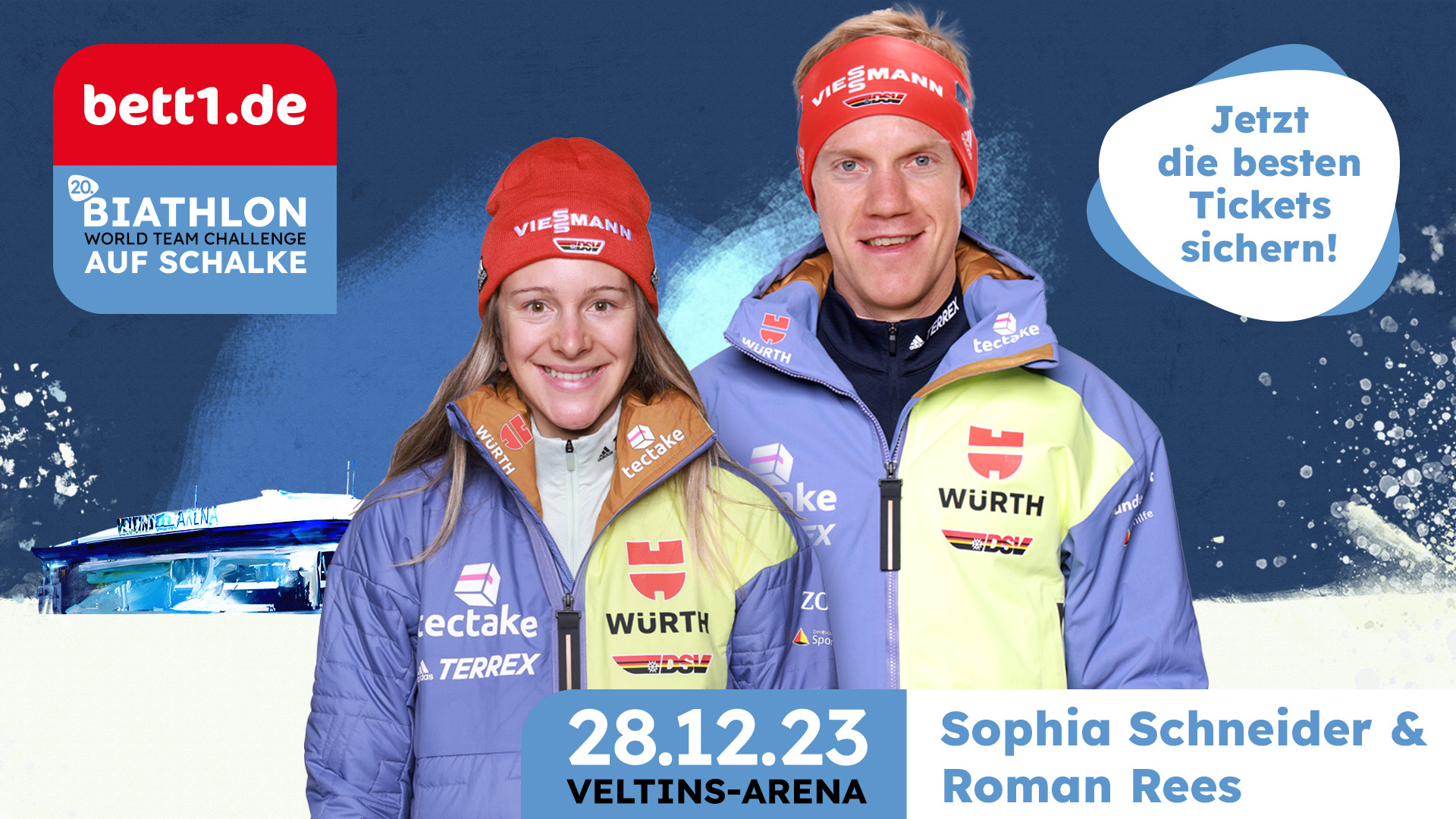 Alle Biathlon-Fans und Wintersport-Begeisterte müssen nicht länger warten, denn das erste deutsche Team für den diesjährigen Biathlon auf Schalke steht fest: Roman Rees und Sophia Schneider gehen für Deutschland beim 20. Jubiläum des beliebten Events als Team 1 an den Start.