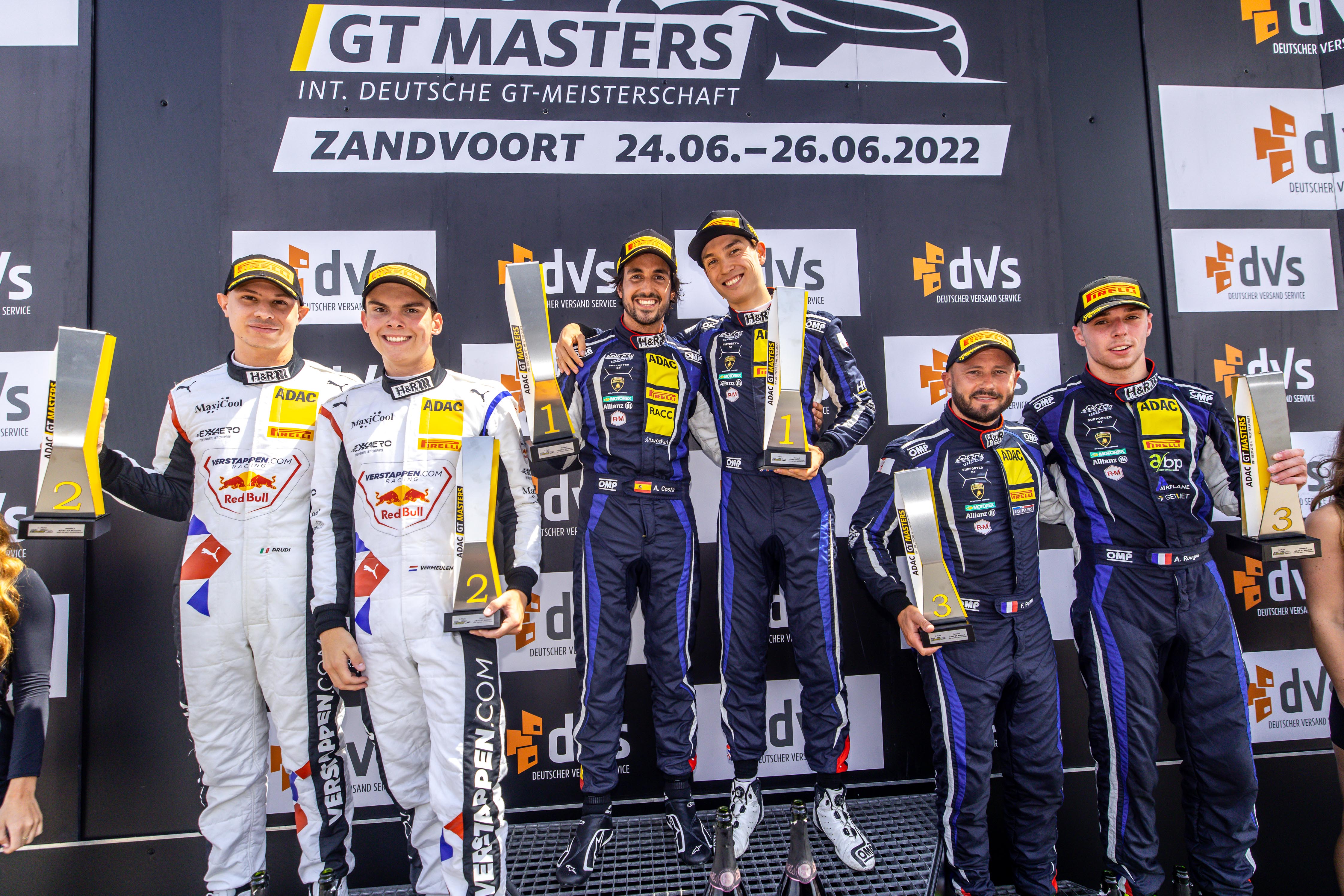 Perfektes Wochenende für Emil Frey Racing in Zandvoort. Am Samstag feierte das Team nach der Pole-Position den ersten Erfolg in der Deutschen GT-Meisterschaft mit Mick Wishofer (22/A) und Konsta Lappalainen (20/FIN). Exakt dieses Ergebnis erzielten Jack Aitken (26/GB) und Albert Costa Balboa (31/E) am Sonntag. Die Trainingsschnellsten kontrollierten mit dem Lamborghini Huracán GT3 Evo #63 das Geschehen auf dem Dünenkurs und landeten einen ungefährdeten Start-Ziel-Sieg. „Das war ein Mega-Erfolg und ein ganz tolles Wochenende für unser Team Emil Frey Racing. Gestern gewonnen, heute wieder ganz oben auf dem Podium, mehr kann man nicht erreichen“, sagte der Ex-Formel-1-Pilot Jack Aitken, der mit 1:34,715 Minuten nicht nur die schnellste Runde fuhr, sondern auch einen neuen ADAC GT Masters-Rundenrekord in Zandvoort aufstellte. Lokalmatador Thierry Vermeulen (19/NL) hatte ebenfalls Grund zum Jubeln. Der Freund von Formel-1-Weltmeister Max Verstappen feierte mit Car Collection Motorsport als Zweiter seinen ersten Podiumsplatz im ADAC GT Masters. Der zweifache Formel-1-Weltmeister Emerson Fittipaldi aus Brasilien überreichte den erfolgreichen Piloten die Siegerpokale. Auf dem niederländischen Dünenkurs wurde eine weitere Bestmarke aufgestellt: Mit 14.500 Zuschauern verzeichnete die Deutschen GT-Meisterschaft den dritten Besucherrekord in Folge.