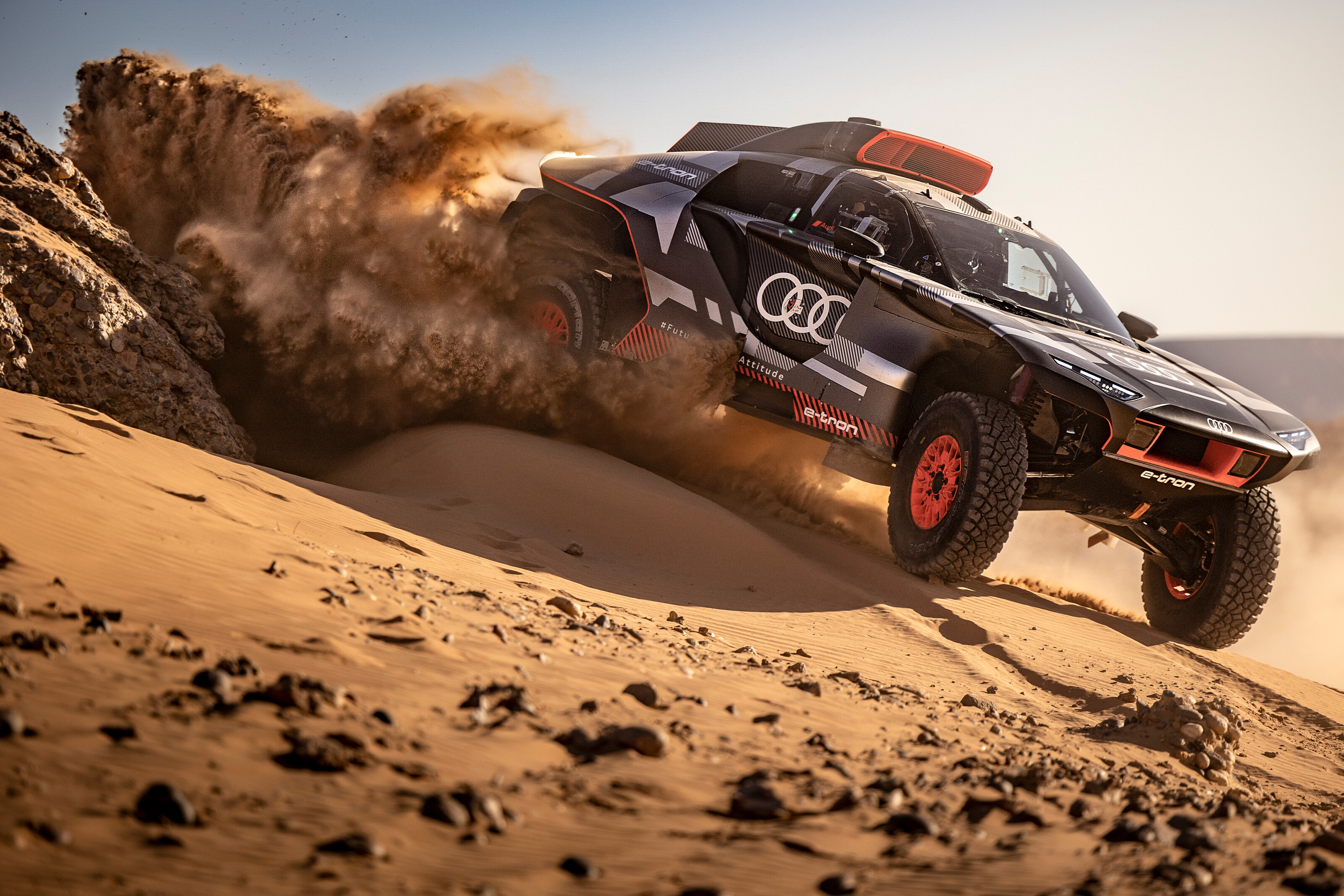 Seine Premiere bei der Rallye Dakar feiert der Audi RS Q e-tron mit einem Elektro-Antrieb in Kombination mit einem effizienten Energiewandler sowie Fahrern der Extraklasse: Stéphane Peterhansel (Frankreich), der auf 14 Dakar-Siege zurückblickt, der „legendäre“ Carlos Sainz (Spanien) sowie Mattias Ekström (Schweden).