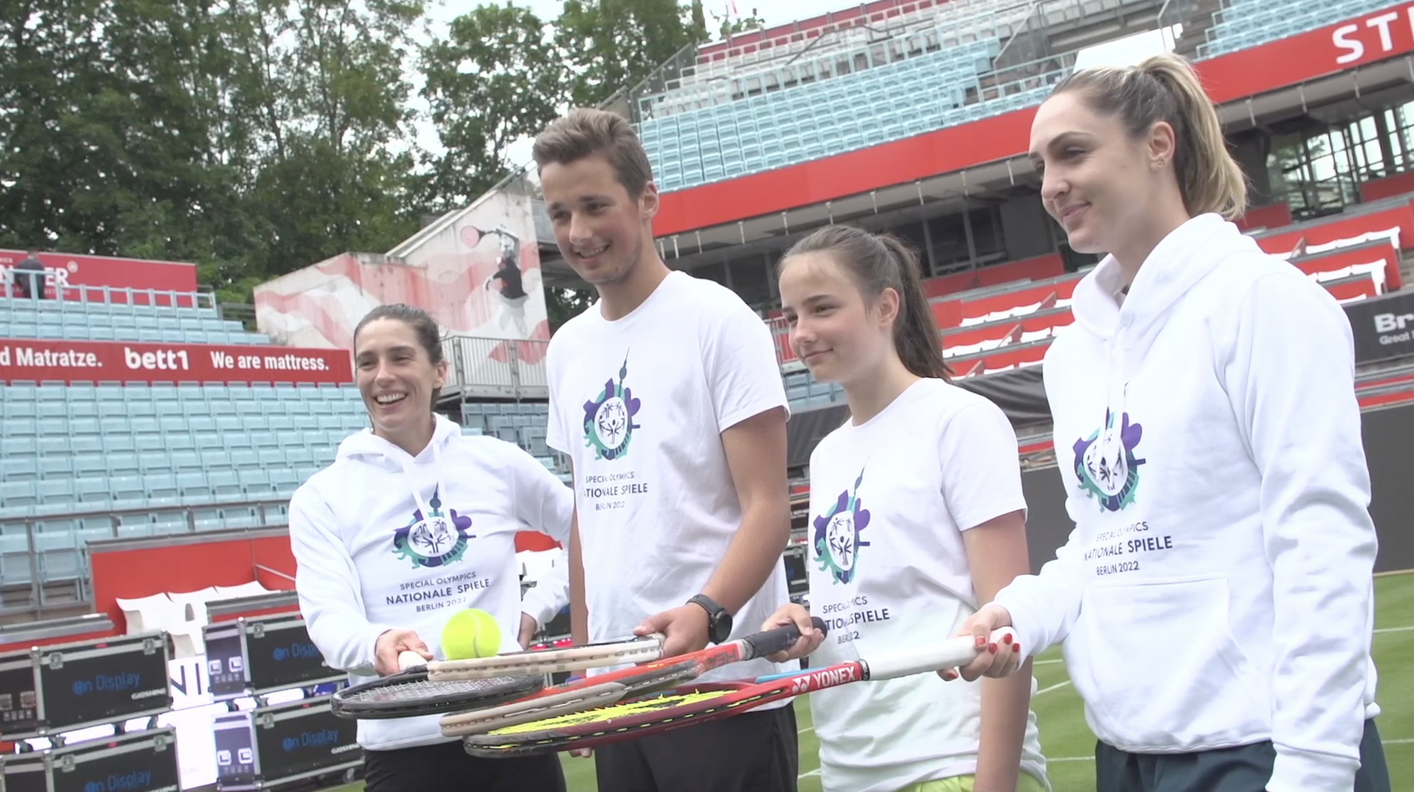 Die Special Olympics Athlet*innen Louis Kleemeyer und Samantha Eckert trainierten mit den Tennis-Profis Andrea Petkovic und Gaby Dabrowski im Berliner Steffi-Graf-Stadion.