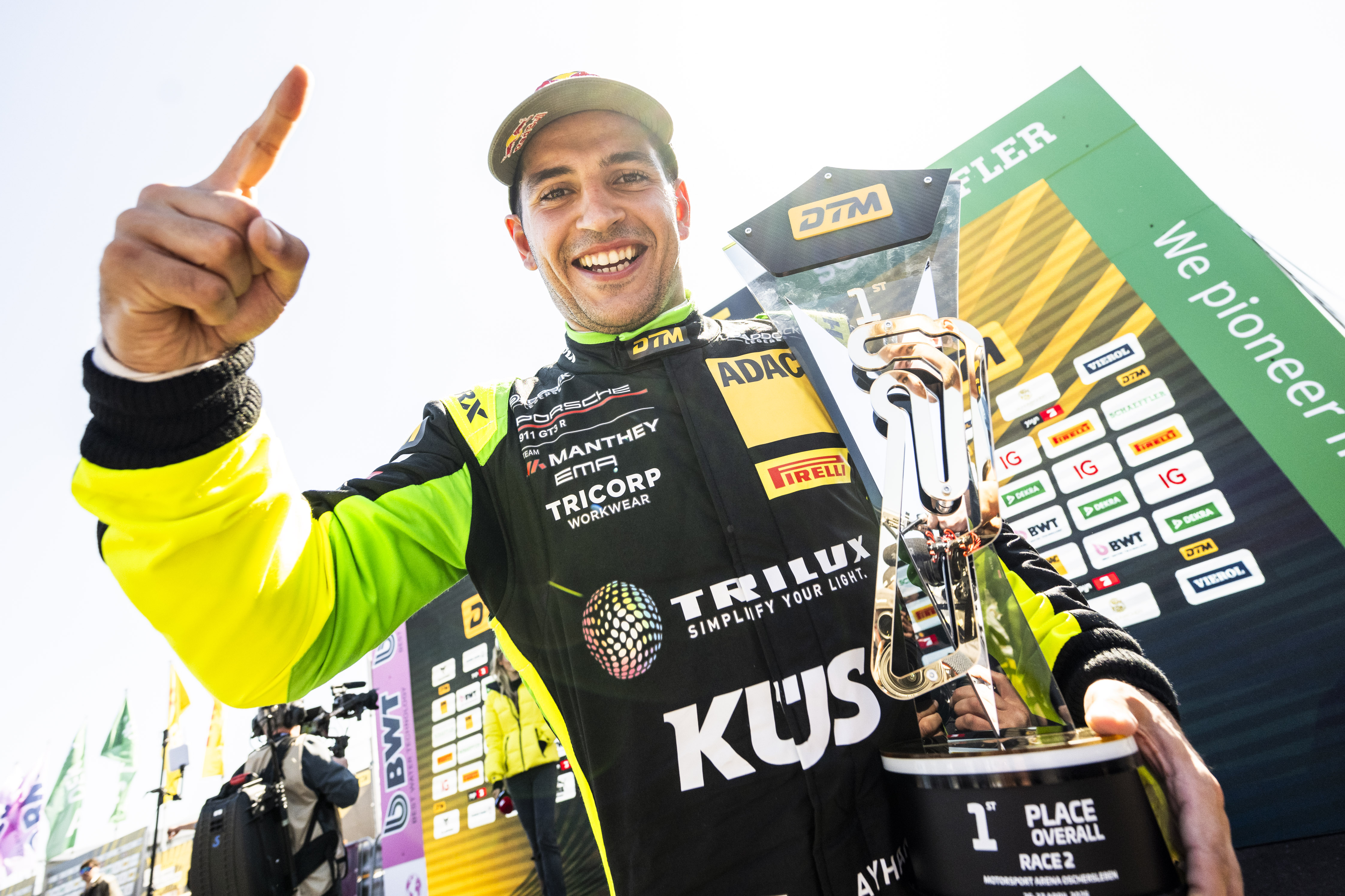 Schnell auf der Strecke, perfekt in der Box: Ayhancan Güven (TR) hat nach einer taktisch sowie fahrerisch starken Leistung seinen ersten Sieg eingefahren. Damit gewann erstmals ein Fahrer aus der Türkei ein DTM-Rennen. Der Porsche-Pilot vom Team Manthey EMA war beim Sonntagslauf in Oschersleben als Vierter gestartet. Dank eines optimal getimten ersten Reifenwechsels übernahm Güven die Führung und überquerte mit einem Vorsprung von 2,6 Sekunden als Erster die Ziellinie. „Seit meinem ersten DTM-Rennen war dieser Moment mein großes Ziel. Das vergangene Jahr verlief für mich eher enttäuschend, umso schöner fühlt es sich an, mit einem Sieg in die neue Saison zu starten. Mein Vater stand direkt neben dem Podium und war mein erster Gratulant. Er hat als mein Mentor großen Anteil an diesem Erfolg“, freute sich der schnelle Türke. Jules Gounon (F) vom Mercedes-AMG Team Mann-Filter beendete das zweite DTM-Rennen der Saison auf Platz zwei. Thomas Preining (A) wurde im zweiten Neunelfer von Manthey EMA Dritter. Insgesamt 47.000 Besucher erlebten bei strahlendem Sonnenschein einen spektakulären DTM-Auftakt in der Magdeburger Börde.